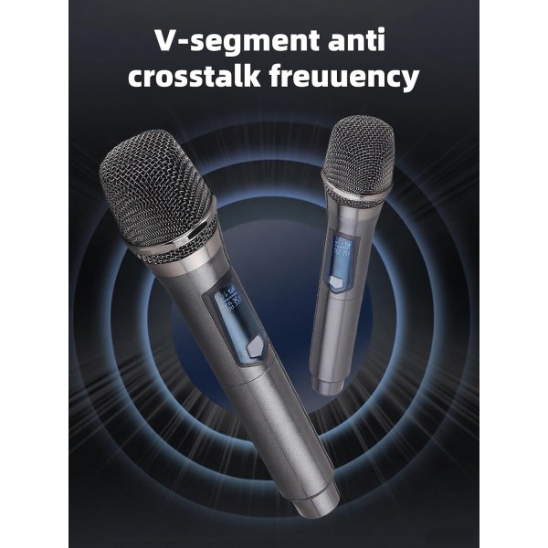 PESKI Wireless Microphones, Professional UHF Dual Microphones for Karaoke, Wireless Dynamic Microphone System Set with Rechargeable Receiver,Plug and Play, Speech, Wedding, Church, PA System