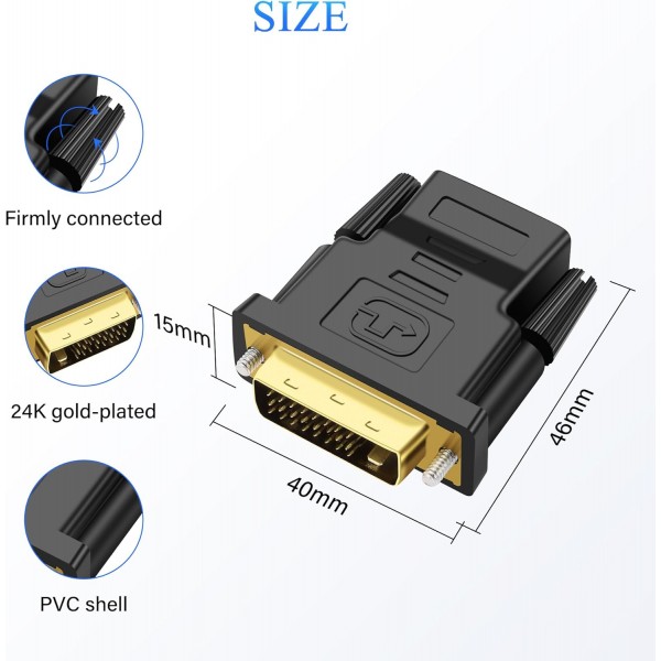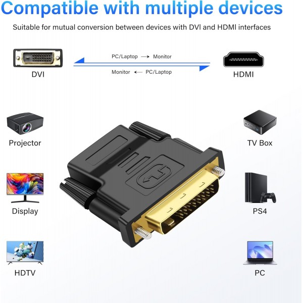 DTECH DVI to HDMI Adapter Bi-Directional HDMI Female to DVI-D Male Gold-Plated Converter 4K 1080P for PC, PS3, PS4, Projector