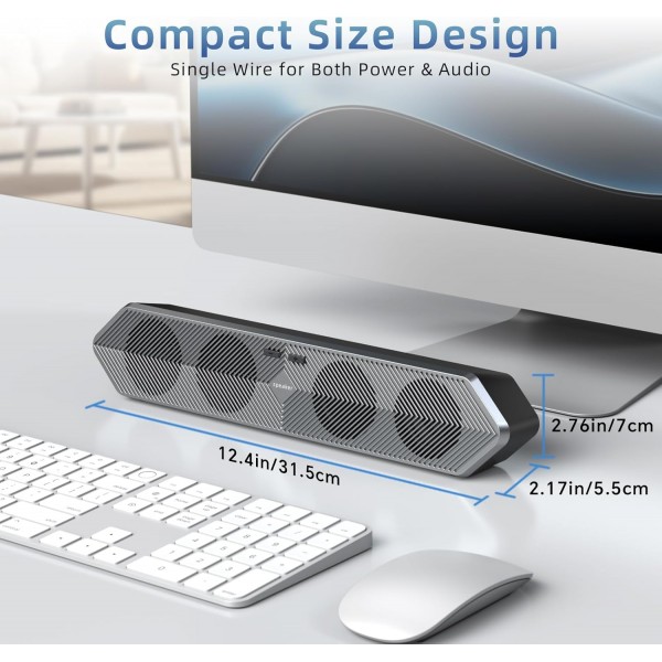 PESKI PC Speaker for Computer, Wired USB Powered Bluetooth Computer Speakers with Stereo Clear Sound, Gaming Speakers Sound Bar for Computer Desktop PC Laptop Monitor, Bluetooth & USB